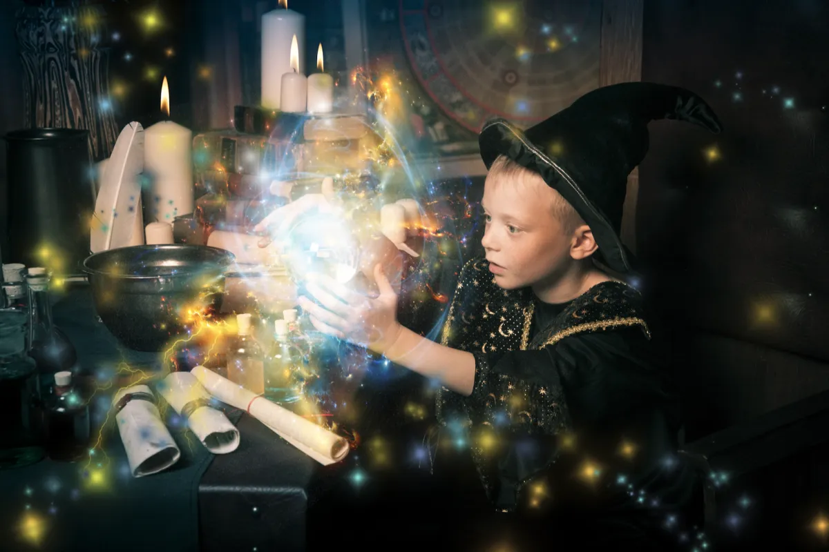 We built physical sets — full-scale enchanted forests, wizard's chambers, ice palaces — and put people inside them. Not in front of a backdrop. Inside a story.