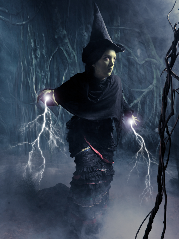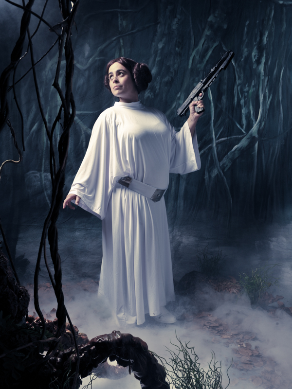 Princess Leia in the Dagobah swamp. Jedi with lightsabers that did in post-production on the stand. A witch firing lightning from both hands. All shot, edited, and printed live.