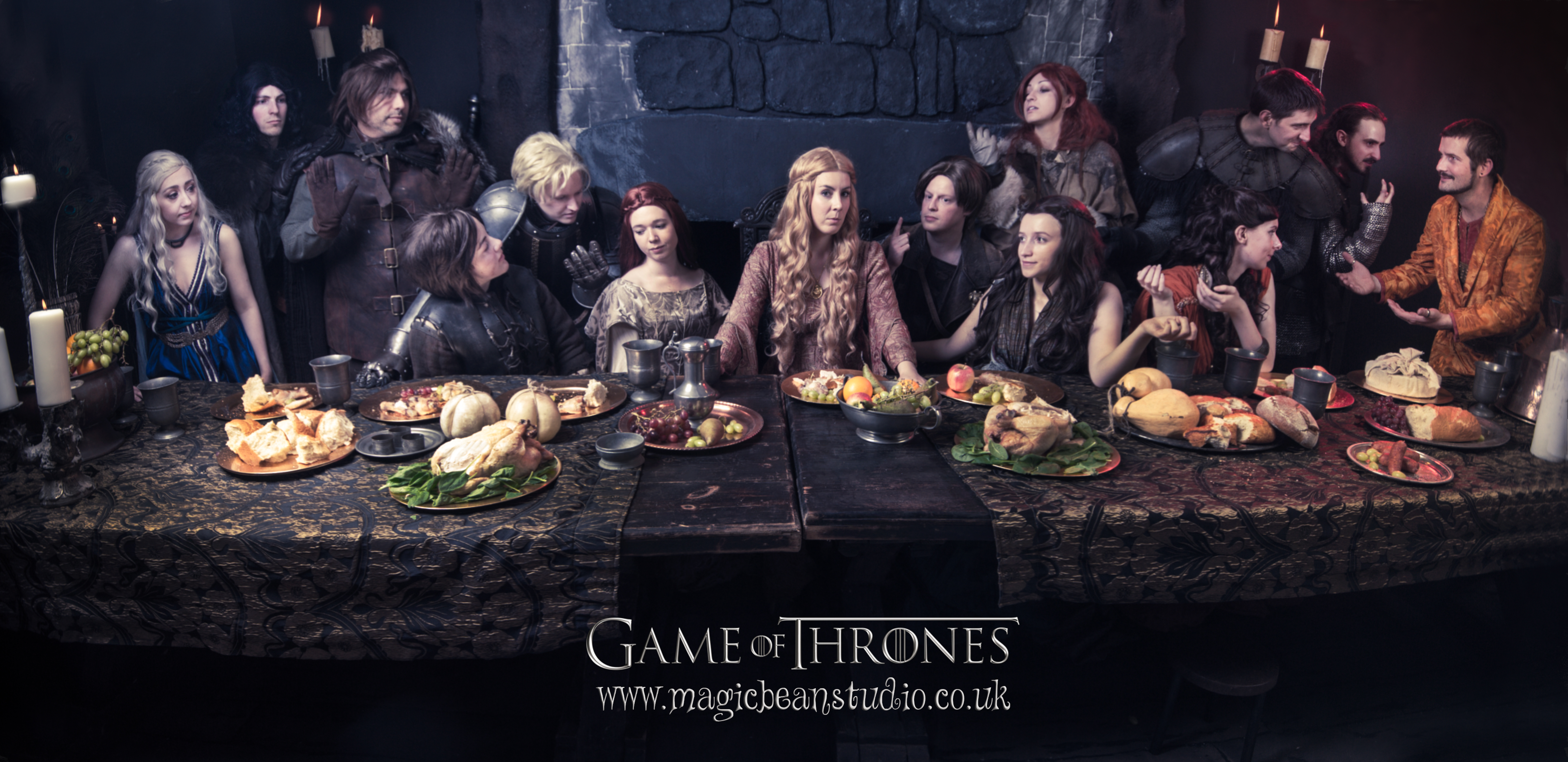 The signature image: our rendition of The Last Supper, with twelve Game of Thrones characters around a candlelit banquet table.