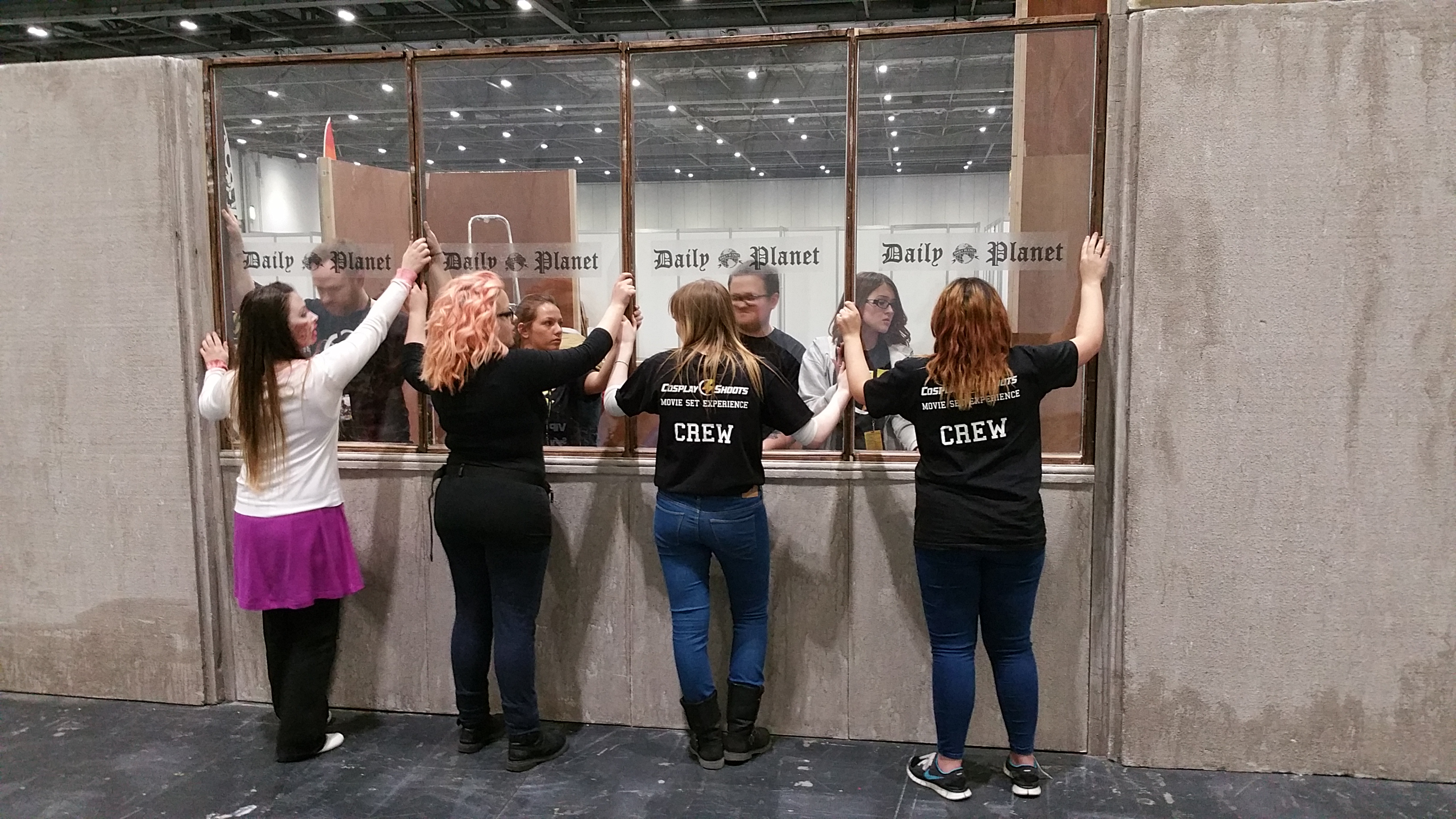 The organisers of London Super Comic Con at ExCeL commissioned us to build their central media room — a four-sided Daily Planet newsroom with a rotating fibreglass globe above the entrance, dummy newspaper copy on every desk, positioned right in the centre of the exhibition floor.